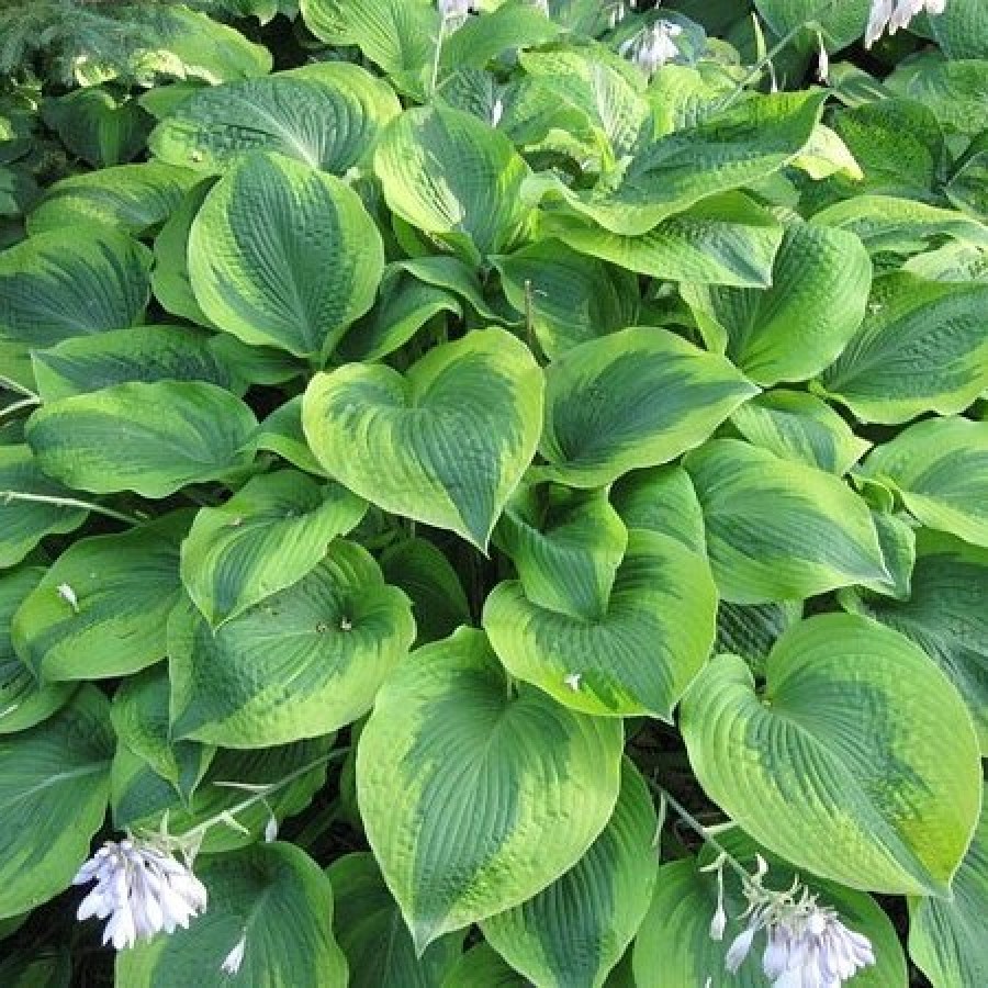Хоста гибридная Клаймэкс - очень эффектная хоста с пышной, густой листвой. Размер куста: 60х120 сантиметров. Листья темно-зеленые с широкой желто-зеленой каймой. Для посадки выбирают полутенистые или тенистые места, предпочитает влажные почвы. Полив тщательный и регулярный, при хорошем поливе у хосты будут крупные, здоровые листья и пышное цветение. Растение прекрасно зимует. Хоста гибридная Клаймэкс на одном месте может расти более 20 лет. Хосты эффектно смотрятся у водоёмов.